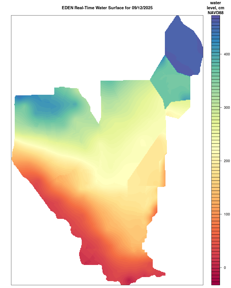 EDEN real-time water surfaces are created daily using real-time water level data for the EDEN network. Most data relayed by satellite or other telemetry have received little or no review. Inaccuracies in the data may be present because of instrument malfunctions or physical changes at the measurement site. A threshold comparison program eliminates daily values that appear erroneous (i.e. extremely high or low, extremely different from previous days). Subsequent review of the data may result in significant revisions to the data.