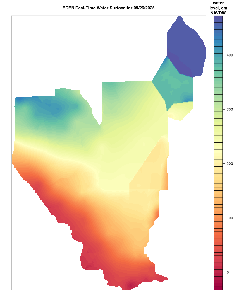 Within approximately 45 days after the end of each quarter (December 31, March 31, June 30, September 30), finalized and approved water level data are provided by SFWMD and ENP at which time real-time EDEN surfaces will be replaced by provisional surfaces. EDEN surfaces created with final, approved water level data from all agency gages will be available in approximately July of each year for the previous year's water year (October – September).